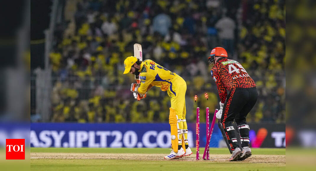 Chennai Super Kings’ Ravindra Jadeja being bowled by Sunrisers Hyderabad’s Kamindu Mendis. (PTI Photo) NEW DELHI: Chennai Super Kings‘ Indian Premier League 2025 campaign hit a new low on Friday as they suffered their seventh defeat of the season, losing to Sunrisers Hyderabad by five wickets at the MA Chidambaram Stadium. It was CSK’s fourth … Read more
